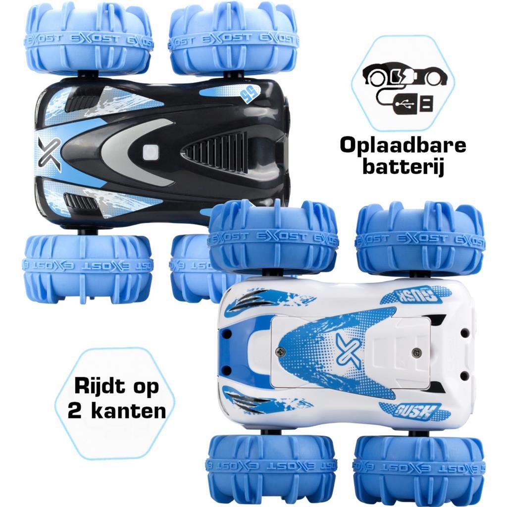 Rijd over land en vaar over water met dit 2in1 amfibie voertuig. Met zachte, duurzame Exost-banden en een 2,4 GHz-transmissie, waardoor meerdere spelers tegelijkertijd kunnen spelen. De AquaCross kan op twee kanten rijden en de auto is voorzien van een oplaadbare batterij. Batterij informatie: Auto: oplaadbare batterij (meegeleverd), Controller: 2 x AA batterij (niet meegeleverd). Geschikt voor kinderen vanaf 5 jaar.