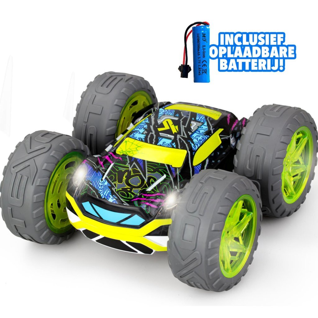 Beleef de adrenaline met de 360 Cross Flash! Dit radiografisch bestuurbare voertuig is ontworpen voor snelheid en stuntprestaties. Met zijn 360-graden draaifunctie kan de Exost indrukwekkende flips en stunts uitvoeren, wat zorgt voor een spannende rijervaring op verschillende terreinen. Het robuuste ontwerp en de stevige banden maken het perfect voor zowel binnen- als buitenspellen. Dit voertuig is ideaal voor kinderen en volwassenen die houden van actie en avontuur. Laat de race beginnen! Kleur: groen/grijs. Met lichteffecten. Geschikt voor kinderen vanaf 5 jaar.
