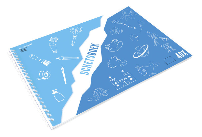 - Blok heeft aan korte zijde een dubbele spiraalbinding