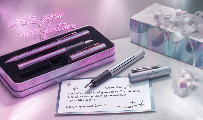 Grip Glam editie, het concept Grip 2011 kenmerkt zicht met een doordacht greepdesign in diverse kleuren en een uitgekiende ergonomie. De karakteristieke knoppen passen bij de kleur van de schacht. Deze Glam serie is een echte 'Eye-catcher'! De houderkleuren bestaan uit een soort iriserende parelmoer glinstering. Dankzij de ergonomische zacht rubberen gripzone zorgt de vulpen GRIP voor urenlang onvermoeid schrijven. De vulpen is voor zowel links- als rechts handigen en voorzien van een clip en stevige penpunt. Schrijfdikte M. Houderkleur: Parel.