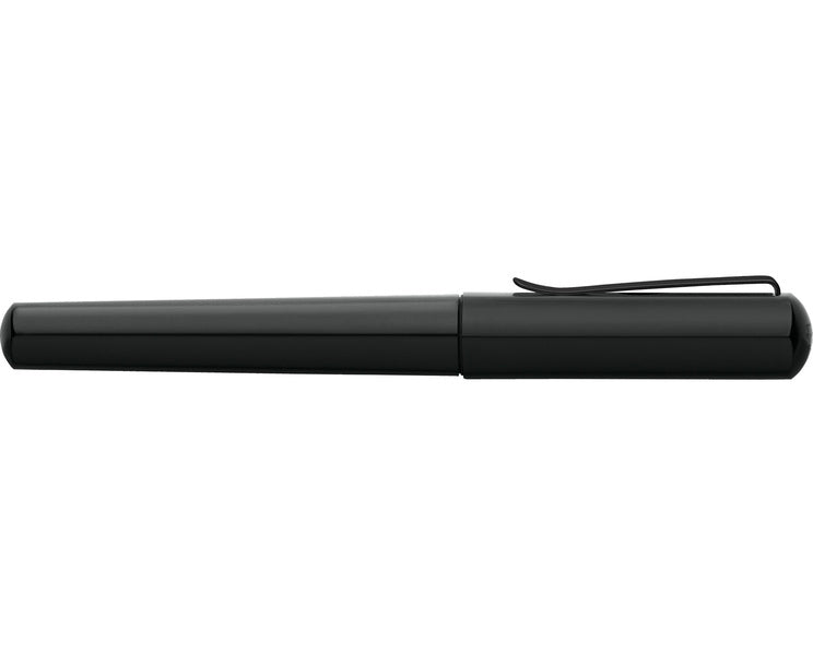 De Hexo schrijfinstrumenten zijn een prachtige serie schrijfwaren leverbaar in 7 verschillende kleuren (zwart, zilver, rose, mat zwart, mat zilver, blauw en brons). De zes hoekige schacht van de pennen bestaat uit geanodiseerd aluminium. De pennen zijn voorzien van een veerbelaste clip gemaakt van metaal. Deze pen is blauw schrijvend. Uitgerust met een cartridge converter systeem - cartridge inbegrepen. Hoogwaardig roestvrij-stalen penpunt in M.