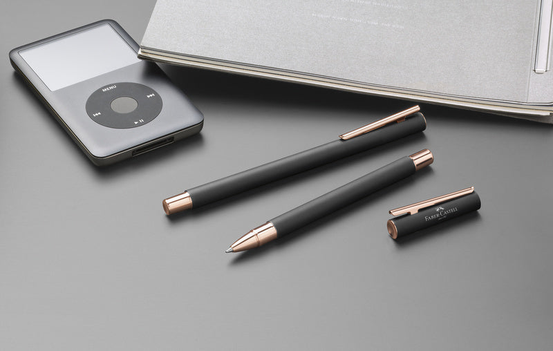 De NEO Slim is een slank model in de kleur zwart met rosé gouden details. Voorzien van een veerbelaste metalen clip.