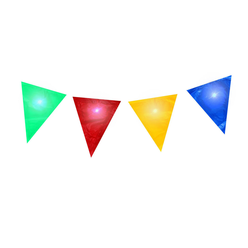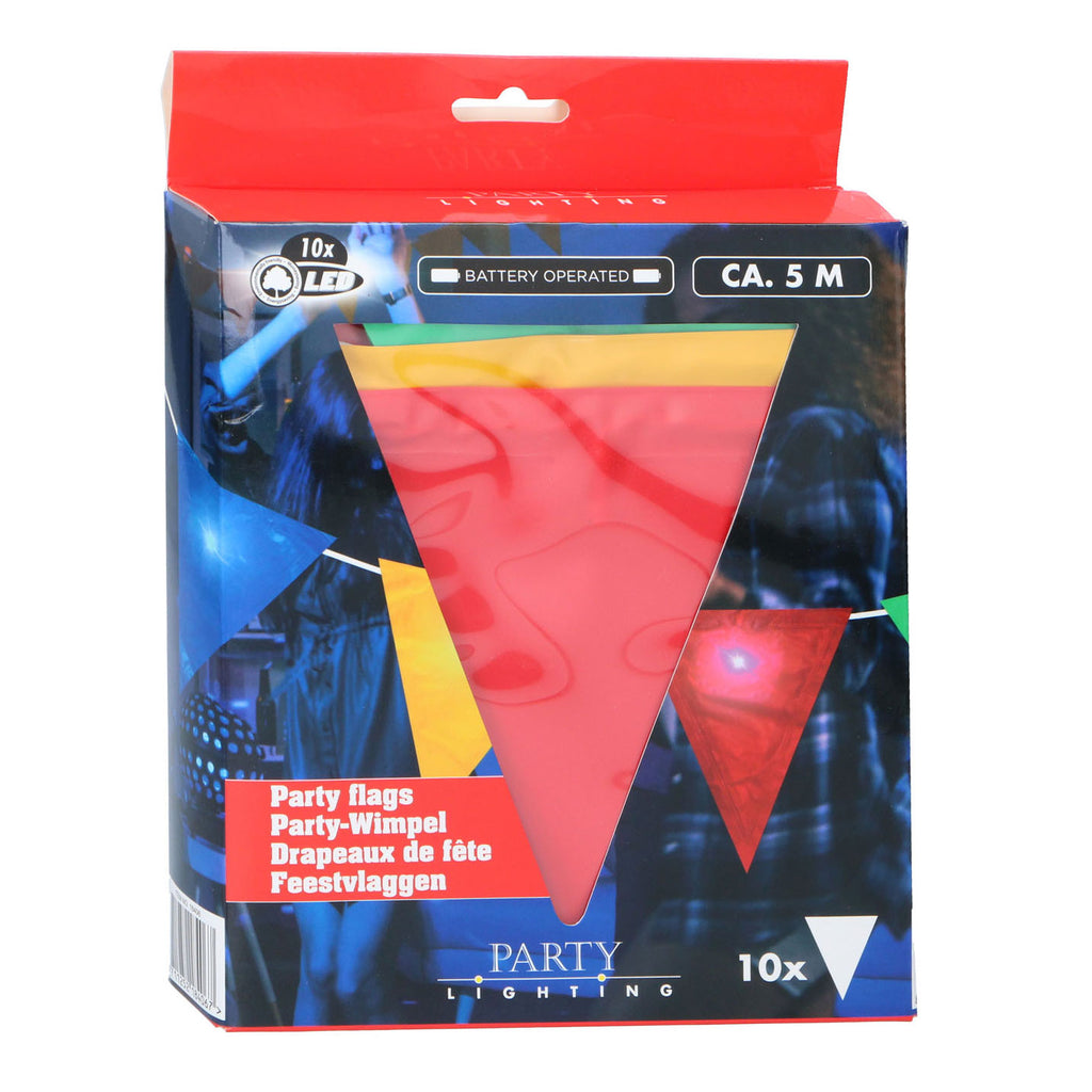 Feestvlaggetjes met LED verlichting in zich, vlaggenlijn is 5 meter lang.
