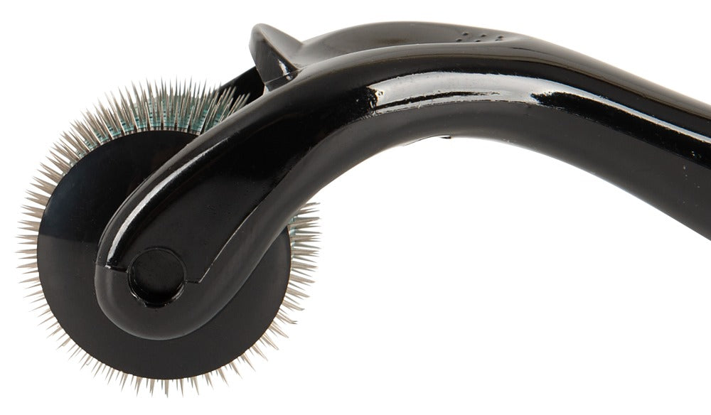 Zwart, handig klein Micro Pinwheel zenuwwieltje uit de fetish collectie. Het wordt met meer of minder druk over de huid gerold en veroorzaakt een zacht stimulerende sensatie of intense plezierige pijn. De 9 wieltjes met in totaal 250 kleine, zeer scherpe naaldjes kunnen overal op het lichaam worden gebruikt. Het lichtgewicht zenuwwieltje met zijn korte, gebogen handvat ligt prettig in de hand en is gemakkelijk te geleiden. Het hoogwaardige Micro Pinwheel is gemaakt van roestvrij staal en polycarbonaat, is zeer robuust en gemakkelijk schoon te maken.