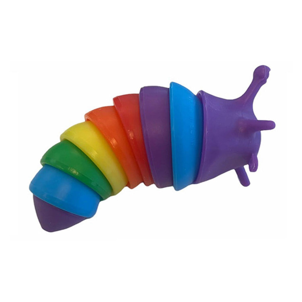 Fidget regenboog slak. De slak heeft een lengte van ca. 10 centimeter.