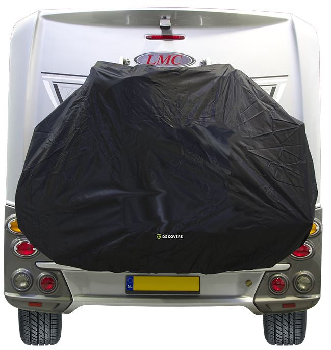 Productspecificaties: Fietsbescherming achterop de camper of caravan. Geschikt voor 2-3 fietsen. Op iedere fietsdrager te gebruiken. Geïntegreerde elastische spanhaken voor bevestiging. Optioneel: transparante houder voor gevarenbord (50×50 cm). Dubbelgestikte naden voor lange levensduur. Materiaal: 300D polyester. Niet geschikt voor fietsendragers die boven het dak uitsteken. Wordt geleverd in handige opbergzak.