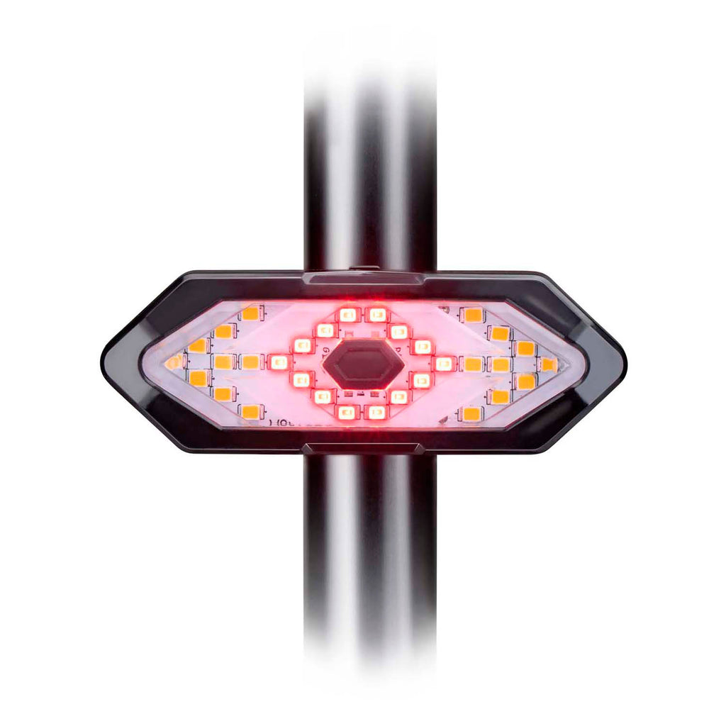 Dunlop fietslicht met richtingaanwijzers biedt veiligheid met 5 functies: constante verlichting, knipperlichten en richtingssignalen. Inclusief oplaadbare batterij en USB-C kabel.