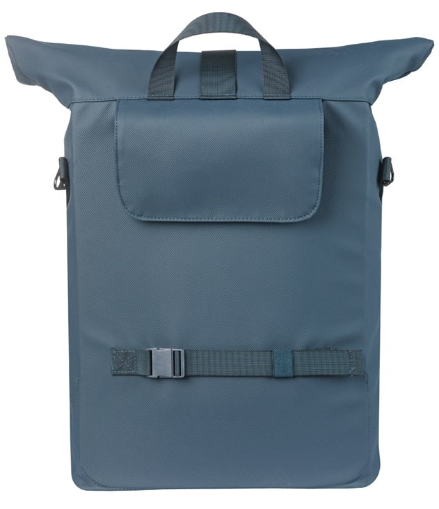 Van huis naar werk, in stijl De Basil Brooklyn schoudertas is ontworpen voor forenzen en stadsfietsers die geen concessies willen doen aan stijl, organisatie en comfort. Of je nu naar kantoor fietst, een afspraak in de stad hebt of de trein pakt. Deze tas sluit naadloos aan bij jouw dag. De diepe navy-kleur geeft je fiets een professionele, elegante uitstraling die zowel strak als tijdloos aanvoelt. Design & stijl Strak, modern en ingetogen, dat is de look van de Basil Brooklyn. De cleane lijnen en het stevige materiaal geven de tas een zakelijke maar toegankelijke uitstraling. Een veelzijdige tas voor wie onderweg net zo georganiseerd wil zijn als op de werkvloer. Gebruiksgemak & functionaliteit De tas heeft een inhoud van 17 liter en beschikt over een gevoerd 16-inch laptopvak, meerdere opbergvakken, een voorvak met rits en twee lussen voor helmbevestiging. De afneembare schouderband en het handvat maken het eenvoudig om de tas ook off-bike comfortabel te dragen. Dankzij reflecterende details ben je beter zichtbaar in het verkeer. Techniek & bevestiging Met MIK Hooks klik je de fietstas met één handbeweging stevig vast op je bagagedrager en net zo makkelijk weer los. Een ideale oplossing voor wie snel wil wisselen tussen fiets en lopen. Duurzaamheid & materiaalkeuze De Basil Brooklyn is gemaakt van gerecycled PET, volledig PFAS-vrij, waterdicht (IPX3) met beschermende vouwsluiting. De tas heeft bovendien een handige repairzipper voor makkelijke reparatie, zodat je er nóg langer plezier van hebt. Kenmerken Inhoud: 17 liter Gemaakt van gerecycled PET (IPX3-waterdicht) PFAS-vrij materiaal Gevoerd 16" laptopvak Voorvak met rits en meerdere binnenvakken Afneembare schouderband en stevig handvat Reflecterende details voor betere zichtbaarheid Twee helmbevestigingslussen Voorzien van repairzipper (voor eenvoudig herstel) Bevestiging met MIK Hooks (geschikt voor MIK-systeemdragers) Afmetingen: 14 x 32 x 40 cm (D x B x H) Kleur: navy Ideaal voor woon-werkverkeer en zakelijke afspraken