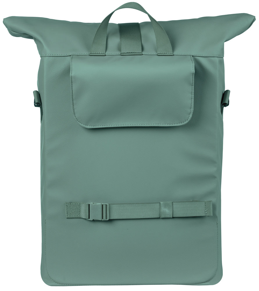 Van huis naar werk, in stijl De Basil Brooklyn schoudertas is ontworpen voor forenzen en stadsfietsers die geen concessies willen doen aan stijl, organisatie en comfort. Of je nu naar kantoor fietst, een afspraak in de stad hebt of de trein pakt. Deze tas sluit naadloos aan bij jouw dag. De vergrijsde groentint geeft een frisse twist aan je dagelijkse ritten zonder af te leiden. Design & stijl Strak, modern en ingetogen, dat is de look van de Basil Brooklyn. De cleane lijnen en het stevige materiaal geven de tas een zakelijke maar toegankelijke uitstraling. Een veelzijdige tas voor wie onderweg net zo georganiseerd wil zijn als op de werkvloer. Gebruiksgemak & functionaliteit De tas heeft een inhoud van 17 liter en beschikt over een gevoerd 16-inch laptopvak, meerdere opbergvakken, een voorvak met rits en twee lussen voor helmbevestiging. De afneembare schouderband en het handvat maken het eenvoudig om de tas ook off-bike comfortabel te dragen. Dankzij reflecterende details ben je beter zichtbaar in het verkeer. Techniek & bevestiging Met MIK Hooks klik je de fietstas met één handbeweging stevig vast op je bagagedrager en net zo makkelijk weer los. Een ideale oplossing voor wie snel wil wisselen tussen fiets en lopen. Duurzaamheid & materiaal keuzeDe Basil Brooklyn is gemaakt van gerecycled PET, volledig PFAS-vrij, waterdicht (IPX3) met beschermende vouwsluiting. De tas heeft bovendien een handige repairzipper voor makkelijke reparatie, zodat je er nóg langer plezier van hebt. Kenmerken Inhoud: 17 liter Gemaakt van gerecycled PET (IPX3-waterdicht) PFAS-vrij materiaal Gevoerd 16" laptopvak Voorvak met rits en meerdere binnenvakken Afneembare schouderband en stevig handvat Reflecterende details voor betere zichtbaarheid Twee helmbevestigingslussen Voorzien van repairzipper (voor eenvoudig herstel) Bevestiging met MIK Hooks (geschikt voor MIK-systeemdragers) Afmetingen: 14 x 32 x 40 cm (D x B x H) Kleur: vergrijsd groen Ideaal voor woon-werkverkeer en zakelijke afspraken