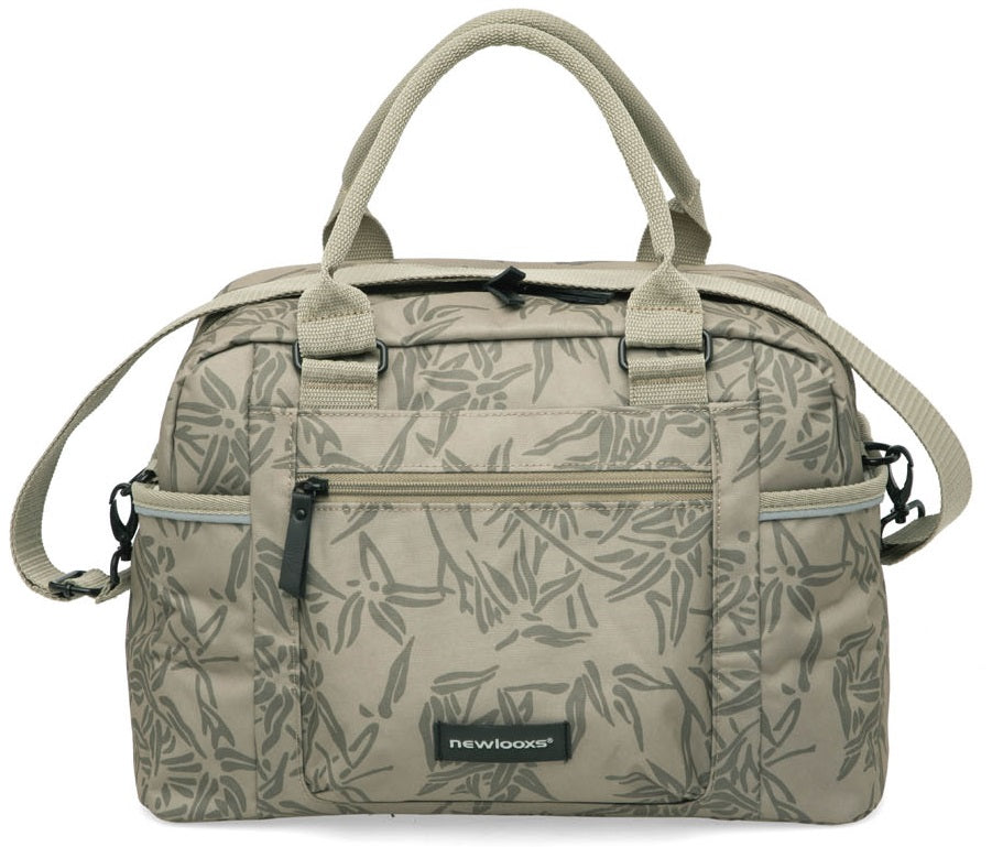 Op zoek naar een handige fietstas met veel vakjes? Deze schoudertas is eenvoudig op de fiets te monteren en weer mee te nemen. Erg handig voor woon-werk verkeer, maar ook geschikt als kleinere weekend- of sporttas. De New Looxs Bari is een mooie schoudertas met veel extra vakken. Het hoofdvak sluit je met een rits. Binnenin zit een groot extra ritsvak en 3 insteekvakken. In 1 van deze insteekvakken past een A4 maat. Aan de voorkant van de schoudertas zit ook een ritsvakje en aan de zijkant vind je 2 insteekvakken. Door het trendy design ziet de fietstas er ook nog eens erg mooi uit. De tas heeft metalen gespen aan de schouderband en kunstlederen details. Eigenschappen: Geschikt voor elektrische fietsen. Sluiting d.m.v. ritssluiting. Veel extra vakken. Veilige reflectie. Met extra ritsvak. Handige afneembare schouderband. Afdekbare haken voor bevestiging op bagagedrager. Product specificaties: Materiaal: Polyester Groep: Fietstas Type: Enkele tas Plaats op fiets: Bagagedrager Waterbestendig: Spatwaterdicht Inhoud: 13 liter Gewicht: 0,90 kg Afmeting: 37cm x 18cm x 26cm Bevestiging: New Looxs Kunststof haken Kleuren: zwart, sand, groen