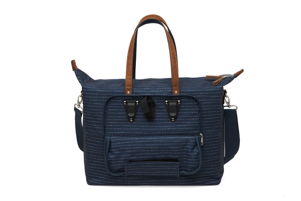 De hippe Tendo is een fietstas, handtas, schoudertas én laptoptas in één. Deze fietstas voor vrouwen heeft een moderne stippenprint en details in lederlook. Dankzij het zeer ruime hoofdvak, de vele kleinere extra vakjes en een gewatteerd vak speciaal voor een laptop, neem je al jouw spullen goed georganiseerd mee. Tover de tas in een handomdraai om tot hand- of schoudertas, dankzij de verborgen bevestigingshaken en afneembare schouderband. De fietstas in Nomi print is er in een zwarte, blauw en een grijze uitvoering. Eigenschappen: Schoudertas gemaakt van waterafstotend polyester. Ruim hoofdvak. Gewatteerd laptopvak voor een 15 laptop. Interieur voorzien van een ritsvak en 3 insteekvakken. Ruim voorvak met ritssluiting. Afneembare en verstelbare schouderband. Wordt geleverd inclusief regenhoes. Veilige reflectie. Produktspecificaties: Materiaal: Polyester Groep: Fietstas Type: Enkele tas, Laptoptas Plaats op fiets: Bagagedrager Waterbestendig: Waterdicht Inhoud: 21 liter Gewicht: 1,30 kg Afmeting: 34cm x 18cm x 44cm Bevestiging: New Looxs kunststof haken Kleuren: zwart, blauw, grijs