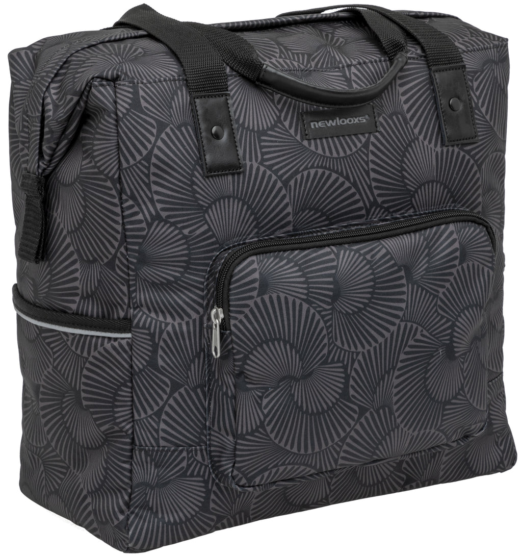De Camella pakaftas is de grootste shopper uit de collectie van New Looxs. Je bevestigt de tas eenvoudig met de afdekbare New Looxs haken aan de bagagedrager of voorop de voordrager door middel van de klittenbanden. Het extra grote hoofdvak maakt de tas erg geschikt voor boodschappen. Daarnaast heeft de tas een extra voorvak met rits en 2 zijvakken. Door de reflectie ben je ook in het donker goed zichtbaar. Wil je de tas 100% waterdicht maken? Koop er dan een losse New Looxs regenhoes bij. Eigenschappen: Boodschappentas gemaakt van waterafstotend polyester Sluiting d.m.v. ritssluiting Hoofdvak met extra voorvak en twee zijvakken Fietshaken in ritsvak Door middel van klittenband ook te bevestigen op voordrager Reflectie aan 2 zijden Specificaties: Materiaal: Waterafstotend polyester Kleuren: Selo Black Afmeting: 36 x 36 x 19 cm Inhoud: 24,5 liter Gewicht: 0,98 kg Bevestiging: New Looxs haken