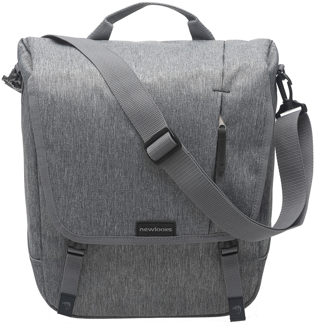 De Nova Single is een stijlvolle schoudertas gemaakt van waterafstotend polyester met een verstelbare schouderband. De tas heeft een ruim hoofdvak en 2 extra ritsvakken. De fietshaken berg je na gebruik op in een speciaal ritsvak zodat je er geen last van hebt. De tas heeft een kliksluiting en veilige reflecterende biezen. Product informatie: Materiaal: Polyester Waterbestendig: spatwaterdicht Afmeting: 35 x 35 x 15 cm Gewicht: 1,08 kg Inhoud: 16 liter Bevestiging: New Looxs kunststof haken Kleur: grijs Eigenschappen: Stijlvolle schoudertas met verstelbare schouderband. Hoofdvak en 2 extra ritsvakken. Afdekbare haken voor bevestiging op bagagedrager. Reflectie aan beide zijden. Met klikgespen.