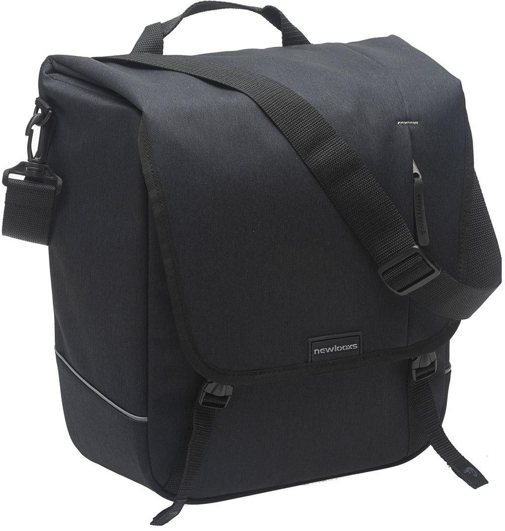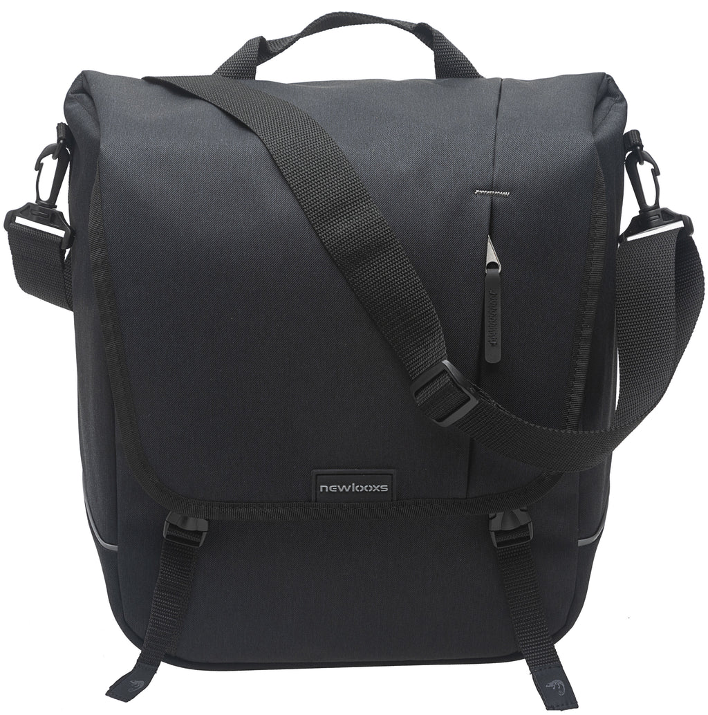 De Nova Single is een stijlvolle schoudertas gemaakt van waterafstotend polyester met een verstelbare schouderband. De tas heeft een ruim hoofdvak en 2 extra ritsvakken. De fietshaken berg je na gebruik op in een speciaal ritsvak zodat je er geen last van hebt. De tas heeft een kliksluiting en veilige reflecterende biezen. Product informatie: Materiaal: Polyester Waterbestendig: spatwaterdicht Afmeting: 35 x 35 x 15 cm Gewicht: 1,08 kg Inhoud: 16 liter Bevestiging: New Looxs kunststof haken Kleur: zwart Eigenschappen: Stijlvolle schoudertas met verstelbare schouderband. Hoofdvak en 2 extra ritsvakken. Afdekbare haken voor bevestiging op bagagedrager. Reflectie aan beide zijden. Met klikgespen.
