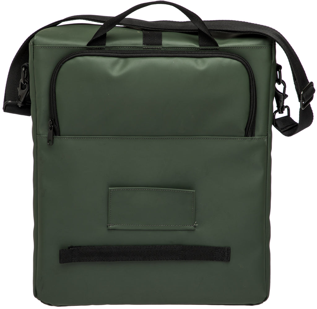 De Odense Single is een heel ruime enkele fietstas die gemaakt is van bijzonder sterk en kwalitatief materiaal. De tas heeft een stoer uiterlijk en veel praktische eigenschappen. In het grote hoofdvak vervoer je veel spullen. Daarnaast heeft de tas 2 extra ritsvakken en 2 kleine insteekvakken. Zo neem je al je spullen georganiseerd mee. Je sluit de tas met een mooie verstelbare haaksluiting. Voor extra veiligheid in het donker is de Odense fietstas afgewerkt met reflectie die vanaf 3 zijden zichtbaar is. Je bevestigt deze mooie fietstas aan de bagagedrager met haken. Deze zijn afdekbaar, zodat je hem met de schouderband ook als schoudertas kan gebruiken. Eigenschappen: Stevige, ruime fietstas Geschikt voor elektrische fietsen Met haaksluiting Reflectie aan beide zijden Met 2 extra ritsvakken Handige afneembare schouderband Afdekbare haken voor bevestiging op bagagedrager Productspecificaties: Materiaal: Polyester Groep: Fietstas Type: Enkele tas Plaats op fiets: Bagagedrager Waterbestendig: Spatwaterdicht Inhoud: 17.5 liter Gewicht: 1,20 kg Afmeting: 32cm x 16cm x 38cm Bevestiging: New Looxs kunststof haken Kleuren: zwart, groen, rust