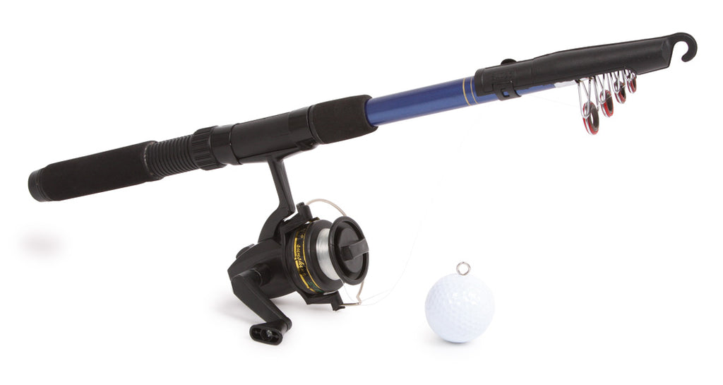 Fisher's Fritz vist verse vis? Nee, golfballen! Deze telescoopvishengel van professionele makelij is een geduldspel om de behendigheid te trainen. Het is niet zo gemakkelijk om de golfbal aan de haak te slaan!