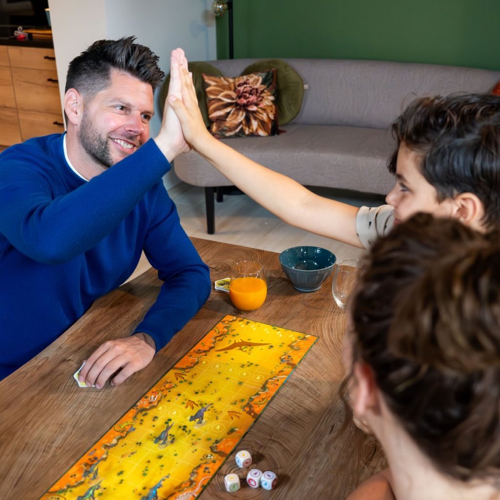 Help jouw raptors door het prehistorische landschap naar de finish te racen. Gebruik de dobbelstenen om de juiste raptors vooruit te laten bewegen. Let goed op de zetten van je tegenstanders en probeer jouw top 3 in de juiste posities te krijgen wanneer de eerste raptor over de finishlijn gaat. Raptor Race is een leuk, spannend en tactisch spel waarin alles in een paar beurten kan veranderen!