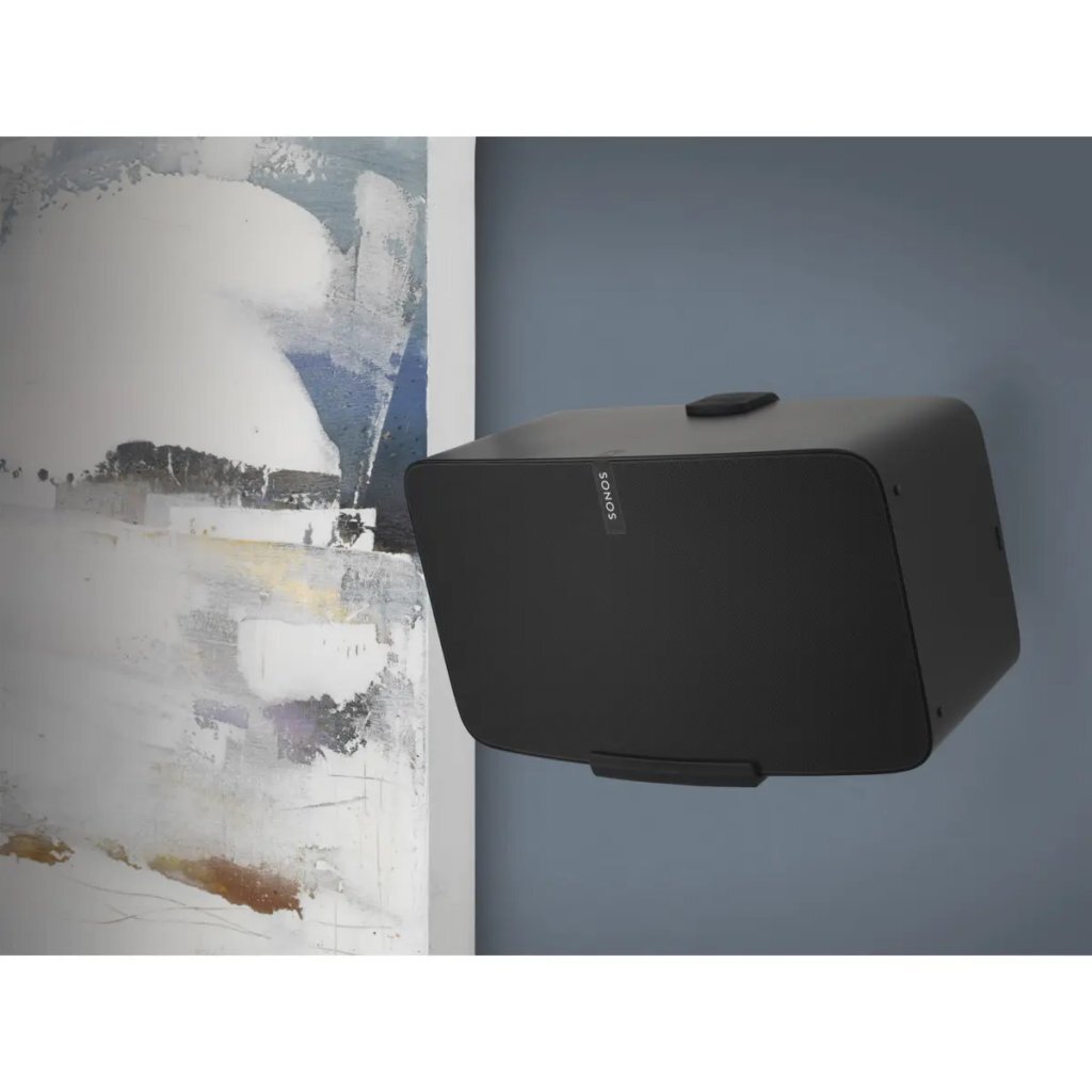 Deze beugel is zo ontworpen dat de beugel perfect bij de SONOS Five past, de kleuren en het design matchen de Sonos Five. De Flexson muurbeugel voor de SONOS Five houdt de speaker in stevig liggende positie terwijl de beugel nauwelijks opvalt. Met de SONOS Play 5 muurbeugel van Flexson kan de speaker worden gedraaid (maximaal 30 graden naar links of rechts) en gekanteld worden (tot 20 graden omlaag) om zo de speaker op de juiste plaats te positioneren voor de perfecte geluidsweergave. Doordat de Play 5 twee side tweeters heeft kan de Play:5 opgehangen, een hele kamer vullen met geluid zonder het verlies van de hoge tonen.