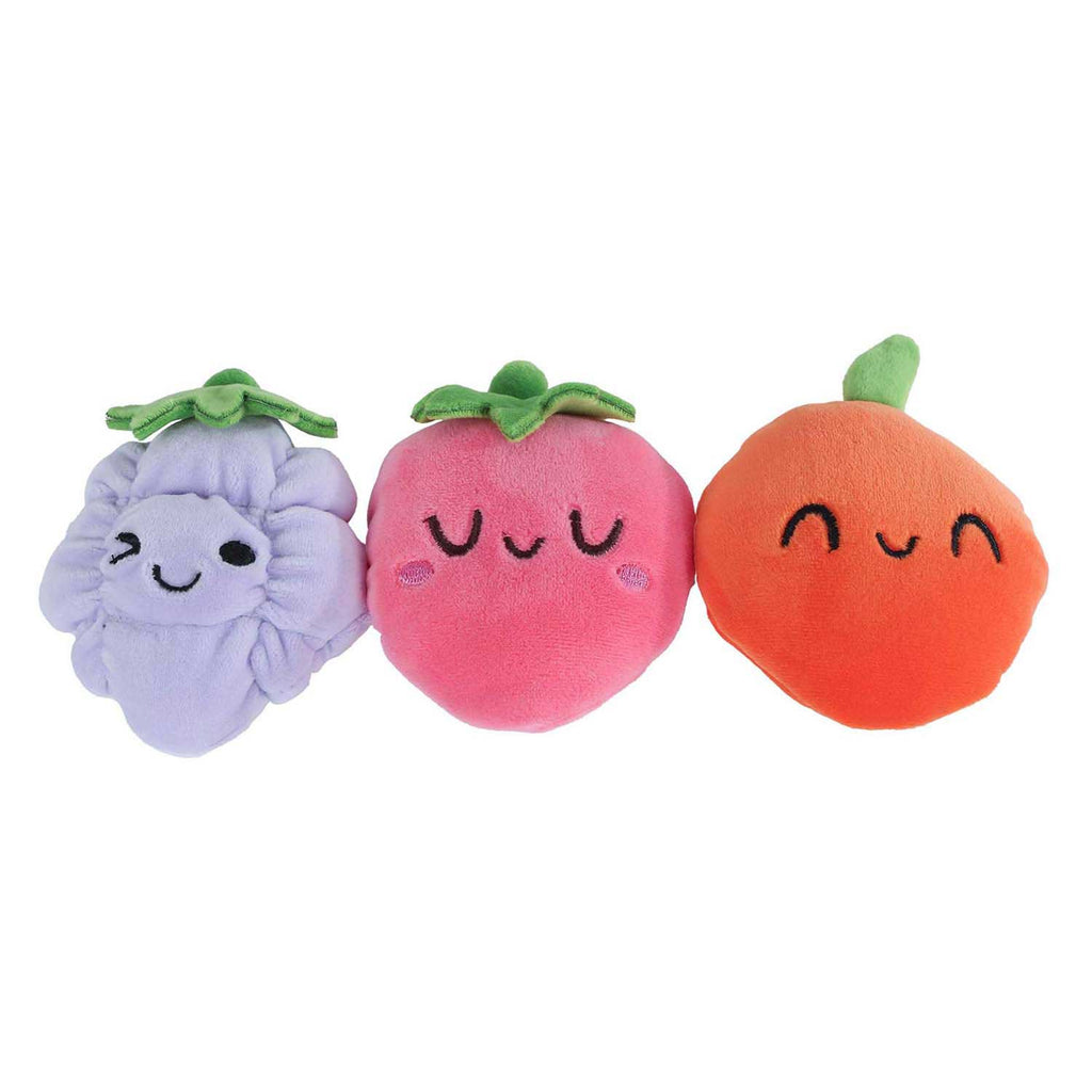 Fluffy Menu pluche smoothie van 20 cm met rits en 3 kleine pluche fruitstukjes. Gemaakt van zacht materiaal. Geschikt voor kinderen vanaf 3 jaar.