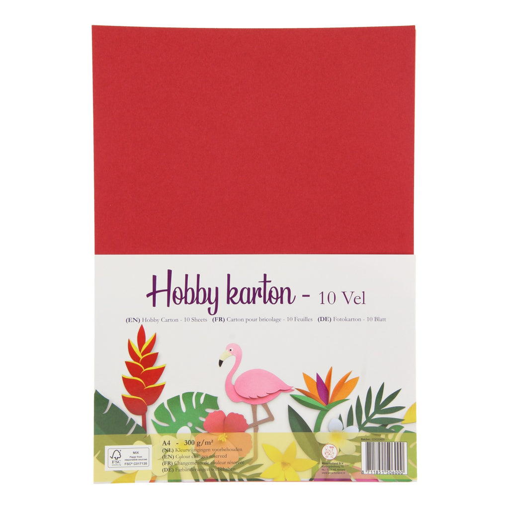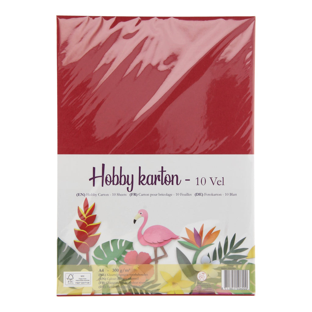 Set van 10 verschillend gekleurde vellen hobby karton. Het 300 g/m2 karton heeft een A4-formaat.