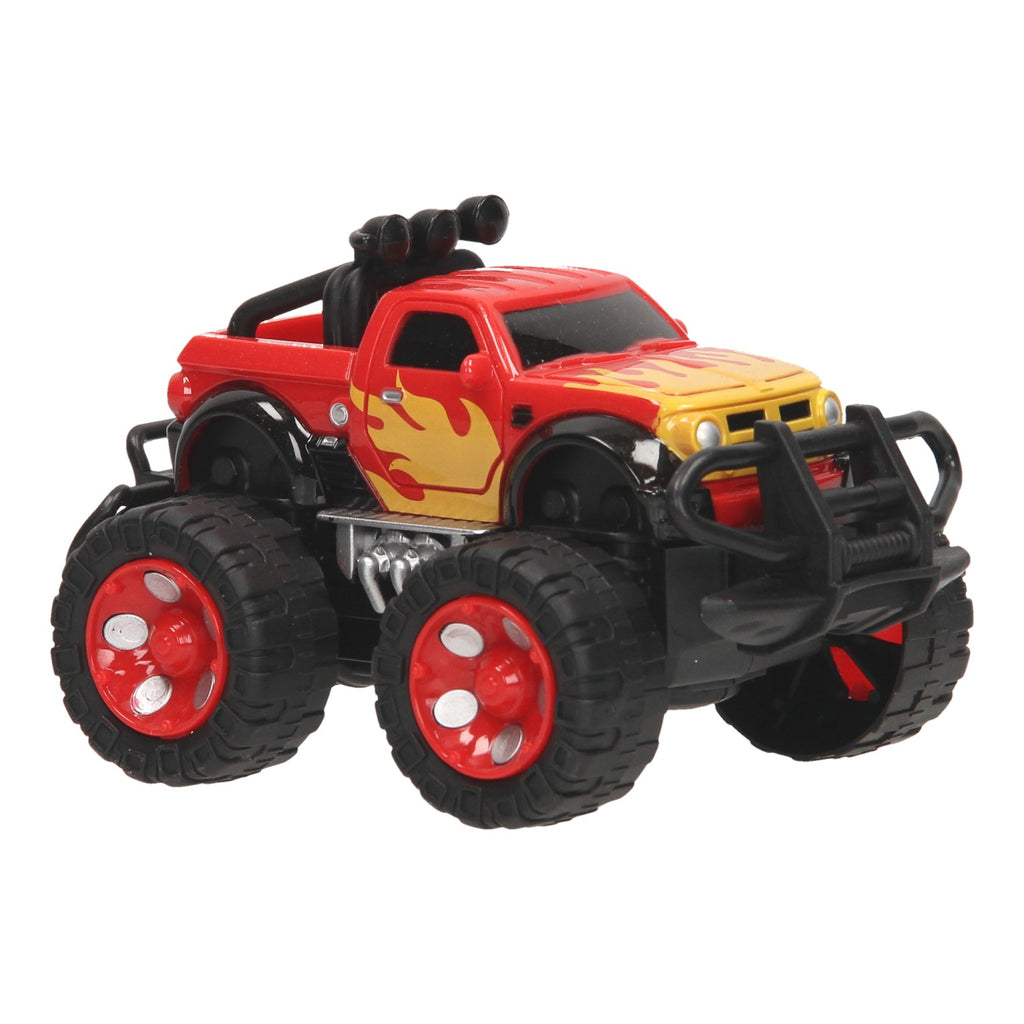 Deze vette Monster car met vlammen is een geweldig cadeau voor kleine stuntmannen en vrouwen. De stuntauto is verkrijgbaar in twee kleuren en is geschikt voor kinderen vanaf 3 jaar.