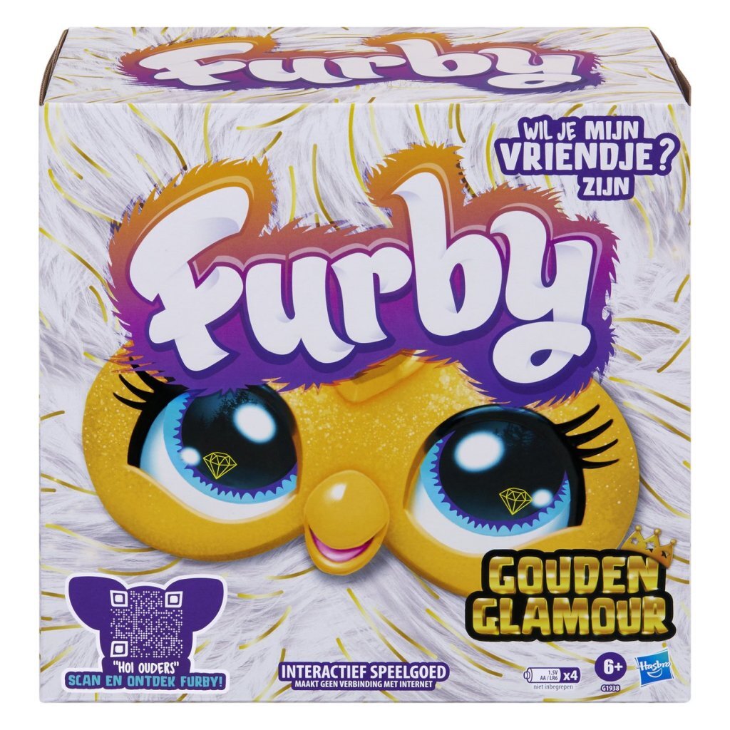 Dit nieuwsgierige wezentje is een geweldig interactief speelgoedvriendje met 5 stemgeactiveerde modi en meer dan 600 zinnen, grapjes, liedjes en nog zo veel meer om te ontdekken. Vertel Furby wat je wil doen met deze 5 opdrachten: 'Dansfeestje', 'Napraten', 'Voorspel mijn toekomst', 'Laten we chillen' en 'Lichtshow'. Furby reageert ook als je hem knuffelt, tikjes op het hoofd geeft, schudt en hem namaakpizza's (of je vinger, jammie) voedt. Hoe meer ze spelen, hoe meer plezier ze ontgrendelen! Zorg voor Furby door hem eten te geven en zijn haar te kammen. Laat hem stralen met de kroon, kam en goudkleurige klikkralen en maak modeaccessoires die kinderen ook kunnen dragen. Geschikt voor kinderen vanaf 6 jaar.