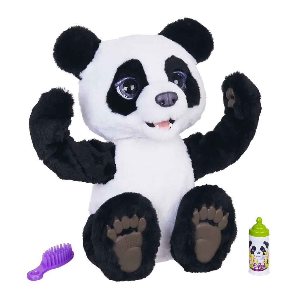 Interactiefpanda met meer dan 100 geluid- en bewegingscombinaties. Hoofd, oren, orgen, mons, neus en armen kunnen bewegen. Inclusief flesje en borstel. Afmeting: 21,5 x 32 x 39 cm. Batterijen (4xC) niet inbegrepen. Geschikt voor kinderen vanaf 4 jaar.