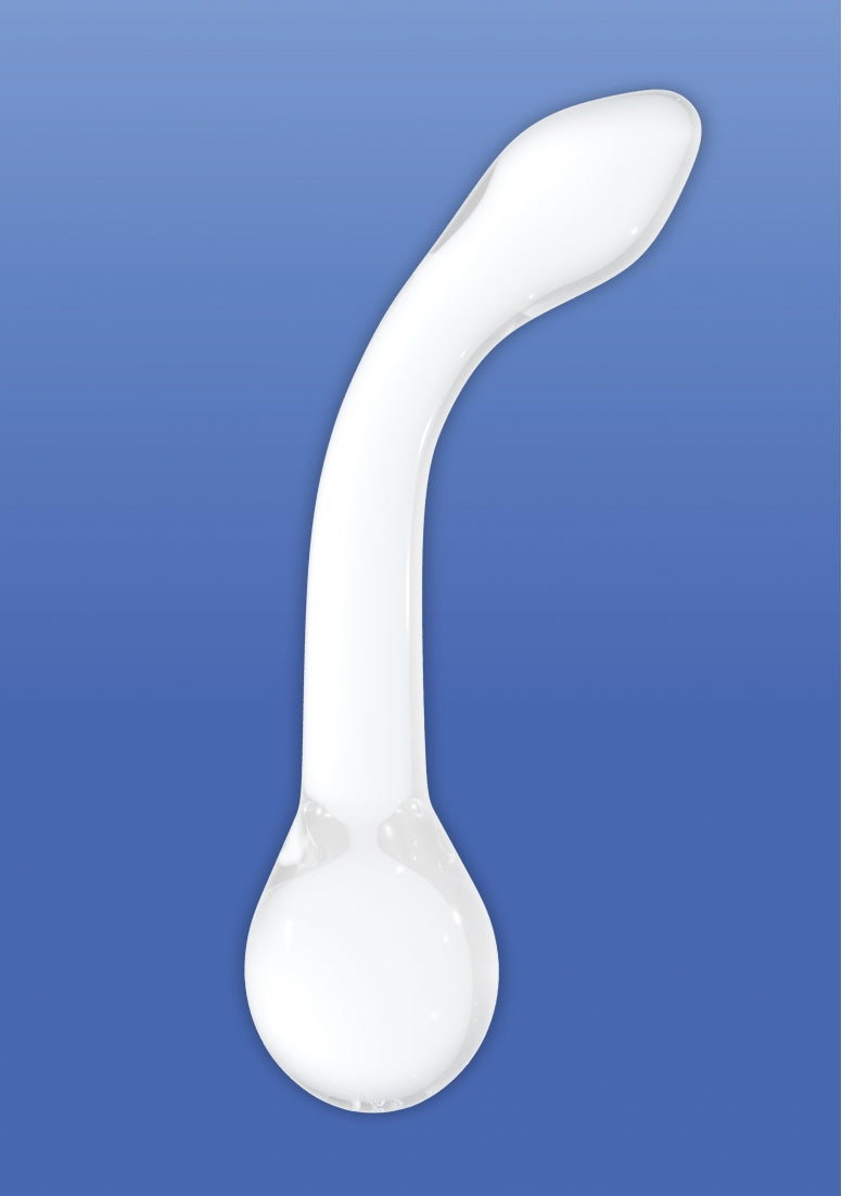 De unieke vormgeving van deze prachtige, handgemaakte 'g-rider' glas dildo is ontworpen voor zowel anale als vaginale spelletjes! Houd de glas dildo onder lauw of koud water en het premium borosilicaat-materiaal zal opwarmen of afkoelen voor spannende spelletjes op de juiste temperatuur. Deze prachtige glas dildo is onbreekbaar, veilig voor het lichaam en geeft een leven lang genot!