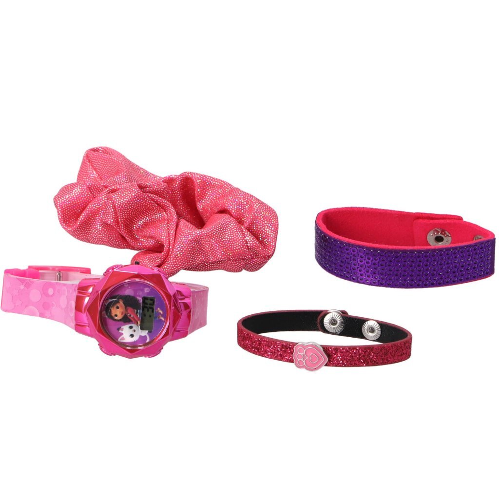 Deze vrolijke cadeauset, perfect voor kinderen vanaf 6 jaar, laat de betovering van Gabby's Dollhouse tot leven komen. De set omvat een speels kinderhorloge dat perfect past bij de kleurrijke en levendige sfeer van Gabby's Dollhouse. Maar dat is niet alles! Ontdek ook twee schattige armbandjes en een charmant haarelastiek, allemaal in het betoverende thema van Gabby's Dollhouse. Of het nu voor een speciale gelegenheid is of gewoon als een verrassing, deze cadeauset voegt een dosis vreugde toe aan het leven van elk kind. Laat ze pronken met hun favoriete Gabby's Dollhouse accessoires en beleef samen magische momenten.