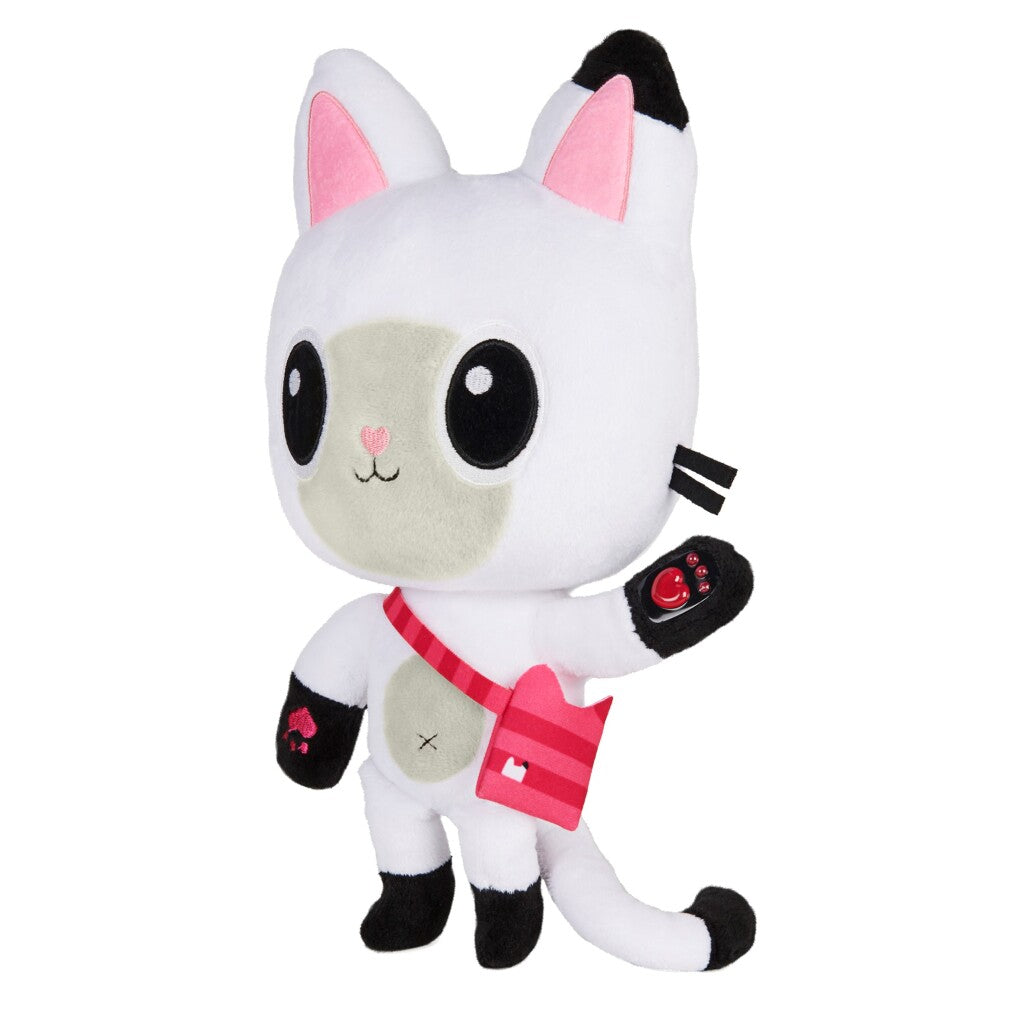 Bereid je voor op een knuffelaanval met pratende Pandy Poek. Deze superzachte knuffel van 33 cm brengt Gabby's beste maatje uit de tv-serie tot leven. Met zijn puntige oren, schattige staart, geborduurde details en zijn Pandytas is de pratende Pandy Poek het perfecte maatje om mee te spelen of om mee te slapen. Knijp in Pandy's pootje en houd vast om te zien hoe hij oplicht en kattastische liedjes worden geactiveerd. Knijp in zijn pootje en laat dan los om hem weer te laten oplichten en om nog meer geluiden en zinnetjes uit de serie te horen. Pandy Poek kent twee liedjes en heeft 10 geluiden en zinnetjes. Met je nieuwe Pandy Poek knuffel kun je keer op keer allerlei spannende avonturen beleven!
