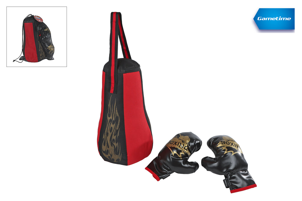 Gametime bokszak met bokshandschoenen in opbergnet 40cm