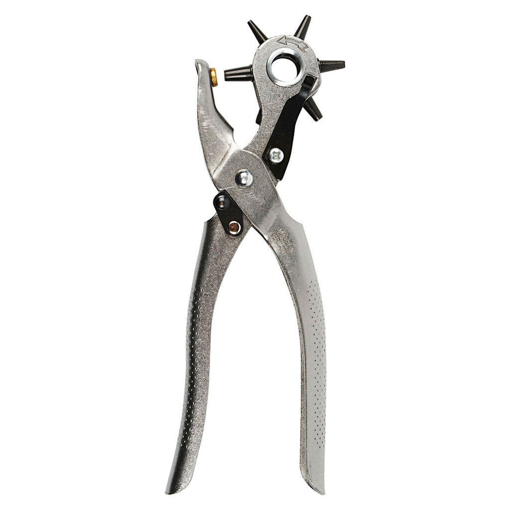 Fantastische leer/stof/karton gatentang met draaiende kop met 6 verschillende gatgroottes. Zeer geschikt voor dikkere materialen zoals leer en dik karton. De gaatjes variëren van 2 tot 4,5 mm.