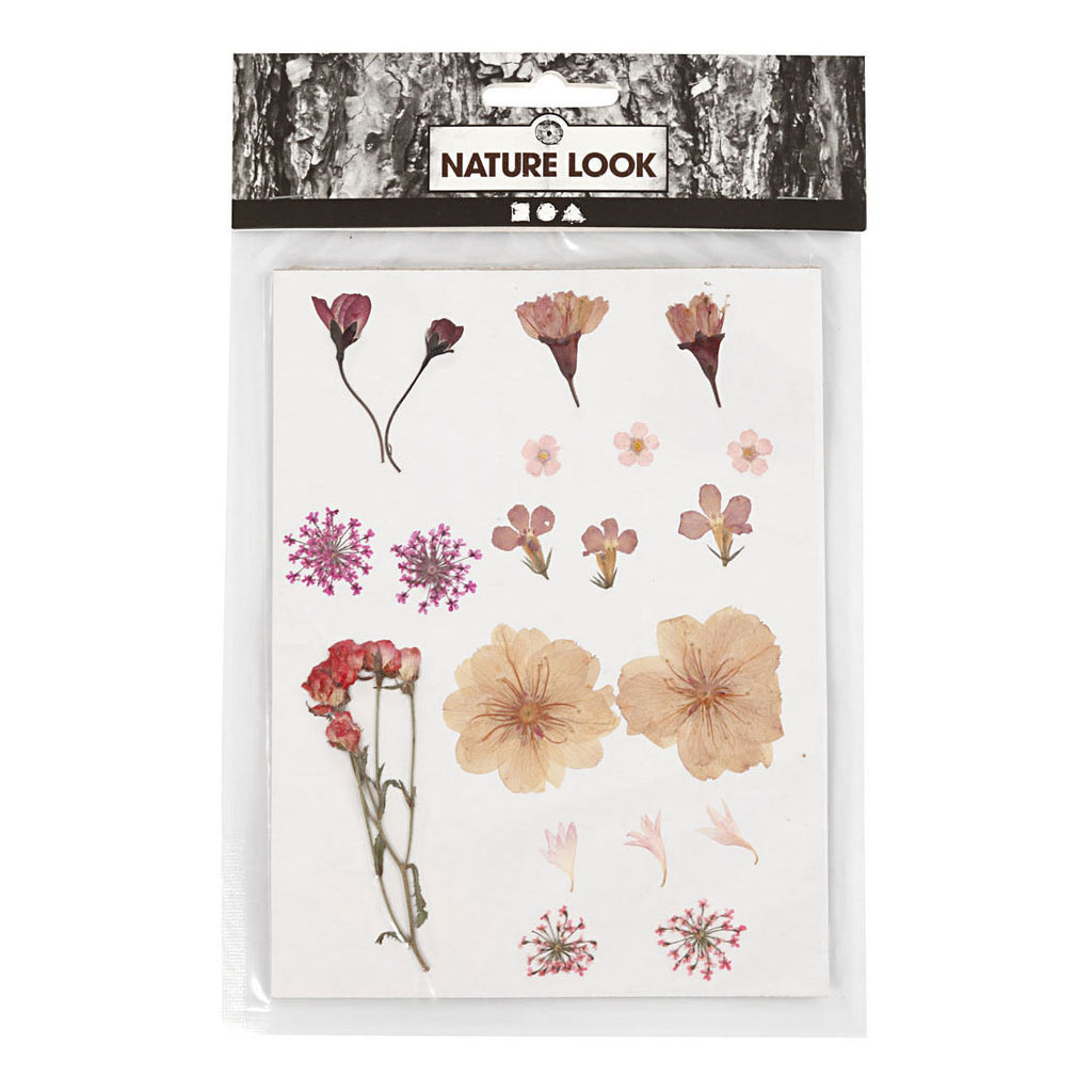 Echte, geperste en gedroogde bloemen en bladeren bedoeld voor decoratie op kaarten, dozen, enz. Makkelijke te bevestigen met Easy Glue. I.v.m. de breekbaarheid adviseren wij een pincet te gebruiken (artikelnr. 13064)