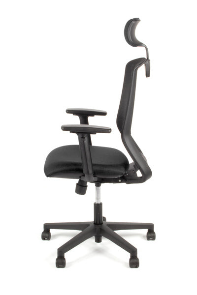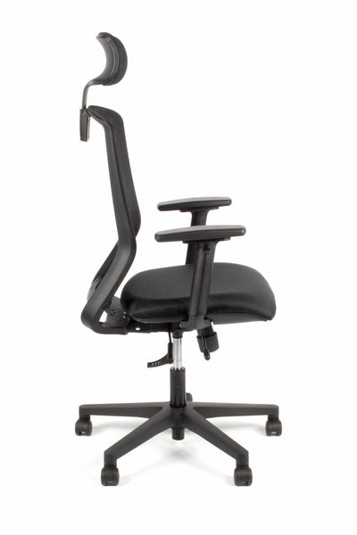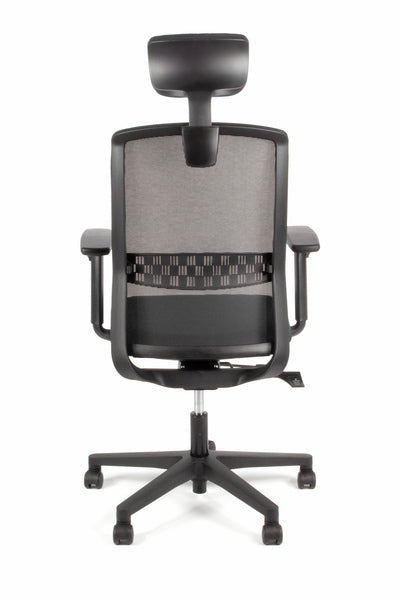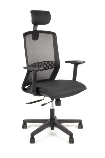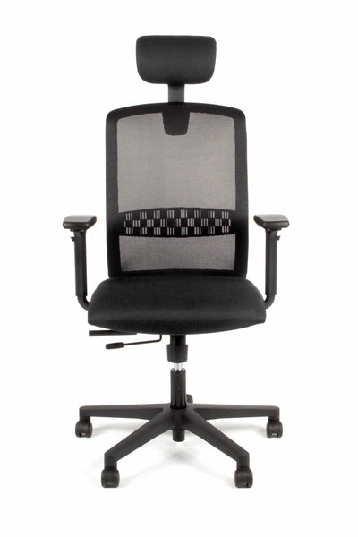 Bureaustoel Tekna 01/PT zorgt voor een comfortabele zithouding door de verstelbare lendesteun en verstelbare hoofdsteun. De armleuningen zijn 3D verstelbaar (hoog/laag/voor/achter/links/rechts) en door het synchroon mechanisme is de stoel kantelbaar en met een draaiknop is de weerstand te regelen. Ook de rugleuning en de zitting zijn verstelbaar waardoor deze bureaustoel geschikt is voor maximaal 8 uur zitcomfort. De stoel is vervaardigd van metaal en heeft een kunststof afwerking. Het onderstel is gemaakt van kunststof en voorzien van 5 wielen die geschikt is voor zachte vloeren. Het polyester zitvlak (50 x 42 cm) is een synthetische vezel die licht, duurzaam, vormvast, kreukvrij en isolerend is en heeft een slijtvastheid van 85.000 zitcycli. De rugleuning is voorzien van netbespanning. Door de hendel onder de zitting is de luchtveer in hoogte individueel in te stellen van 43 tot 56 centimeter. De bureaustoel heeft een maximaal draagvermogen van 110 kg en weegt 11,4 kg. Kleur stof zwart/zwart. De bureaustoel wordt geleverd met 5 jaar garantie en is voorzien van Arbo norm EN1335. Made in Italy.