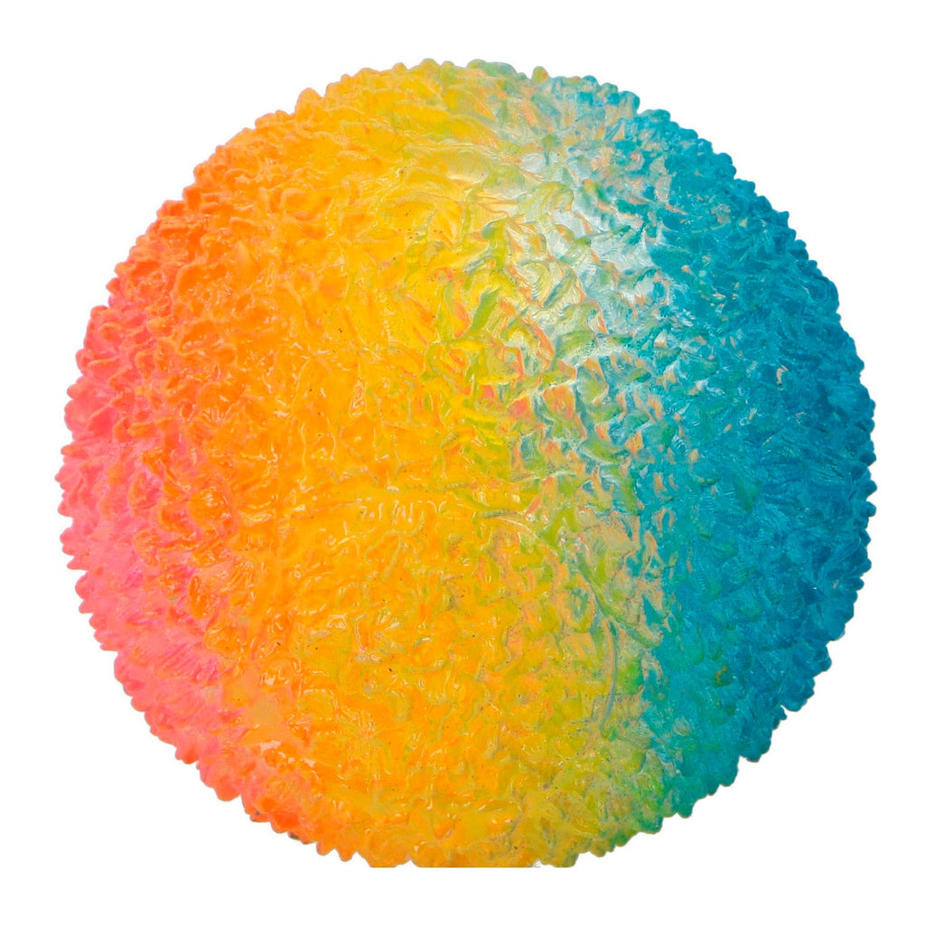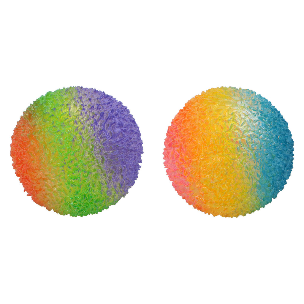 Beleef nog meer plezier met de gekleurde stuiterbal groot met een doorsnede van wel 6,5 cm.