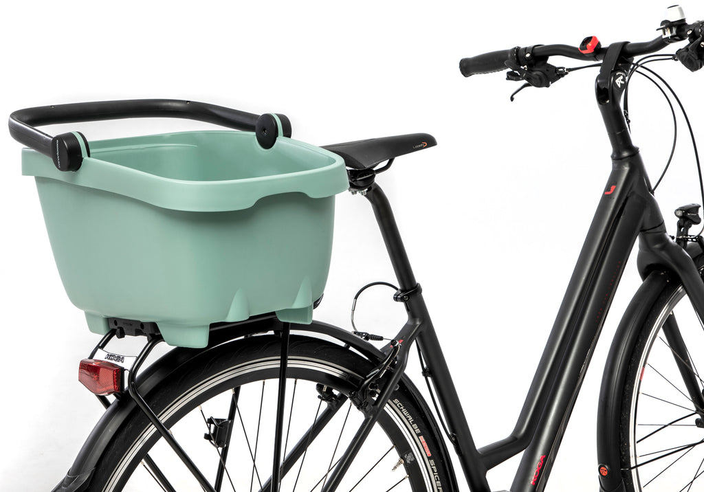 Ontdek de Clipper Racktime fietsmand: de ultieme fietsmand voor de Racktime bagagedrager. Gezellig met jouw trouwe viervoeter op de fiets? Of op zoek naar een duurzaam alternatief voor de plastic boodschappentas? De Clipper fietsmand biedt je een duurzame oplossing om je hondje of boodschappen mee te nemen op de fiets. Eigenschappen: Mand gemaakt van gerecycled kunststof Ontworpen en geproduceerd in Nederland Inclusief Racktime Snapit Adapter Geschikt voor smalle en brede Racktime bagagedragers Eenvoudig en snel afneembaar en bevestigen Te beveiligen tegen diefstal met het Racktime Secureit slotje Gepatenteerde handgreep: met één hand te bedienen, waardoor je altijd één hand vrij hebt Het handvat is zo ontworpen dat deze niet rammelt tijdens het fietsen. Eenvoudig schoon te maken met vochtige doek Maximale belasting: 10 kg Productspecificaties: Materiaal: Recycled plastic Groep: Fietsmand Type: Fietsmand Plaats op fiets: Bagagedrager, Voordrager Inhoud: 28 liter Gewicht: 1,45 kg Afmeting: 49cm x 37cm x 29cm Bevestiging: Racktime SNAPIT 1.0 adapter Kleur: groen, anthraciet