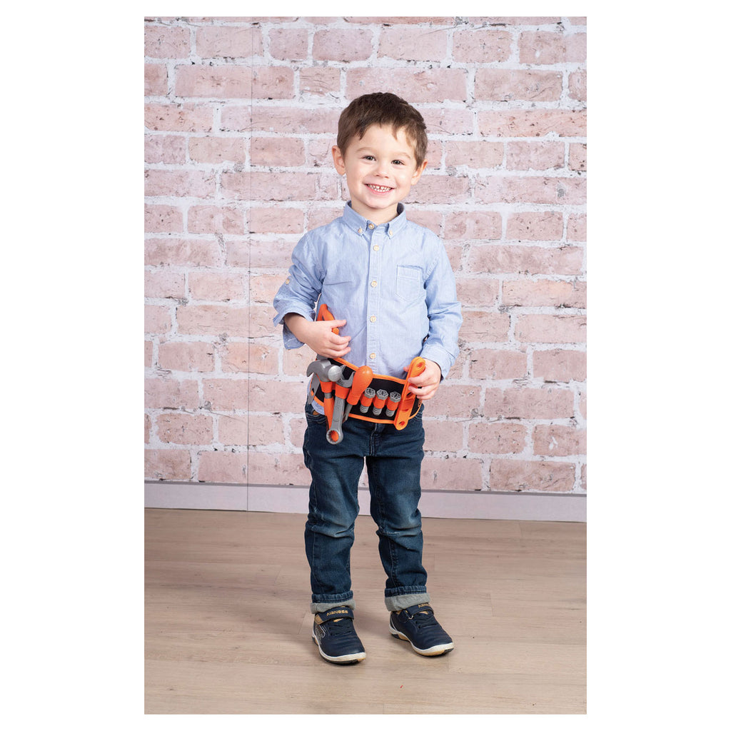 Verstelbare Smoby Black & Decker Gereedschapsriem met 14 accessoires. De gereedschapsriem heeft een lengte van 44 centimeter.