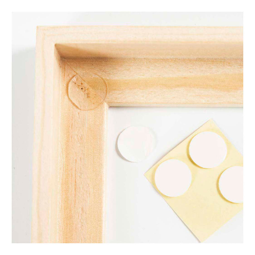 Vierkant gespannen canvas van 15,8 x 15,8 cm op houten frame. Gegrond en direct beschilderbaar met acryl, olie of markers. Inclusief kussentjes voor lijstbevestiging.