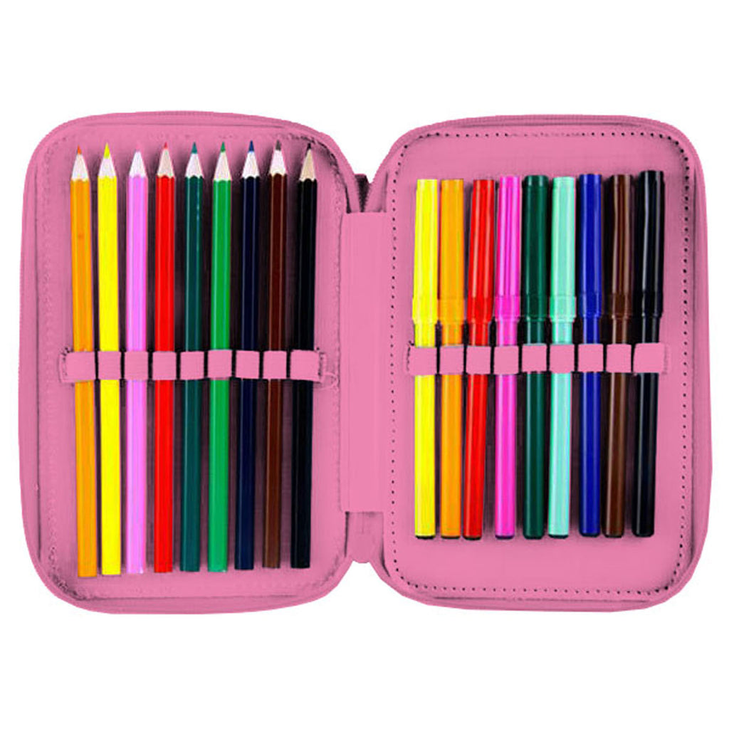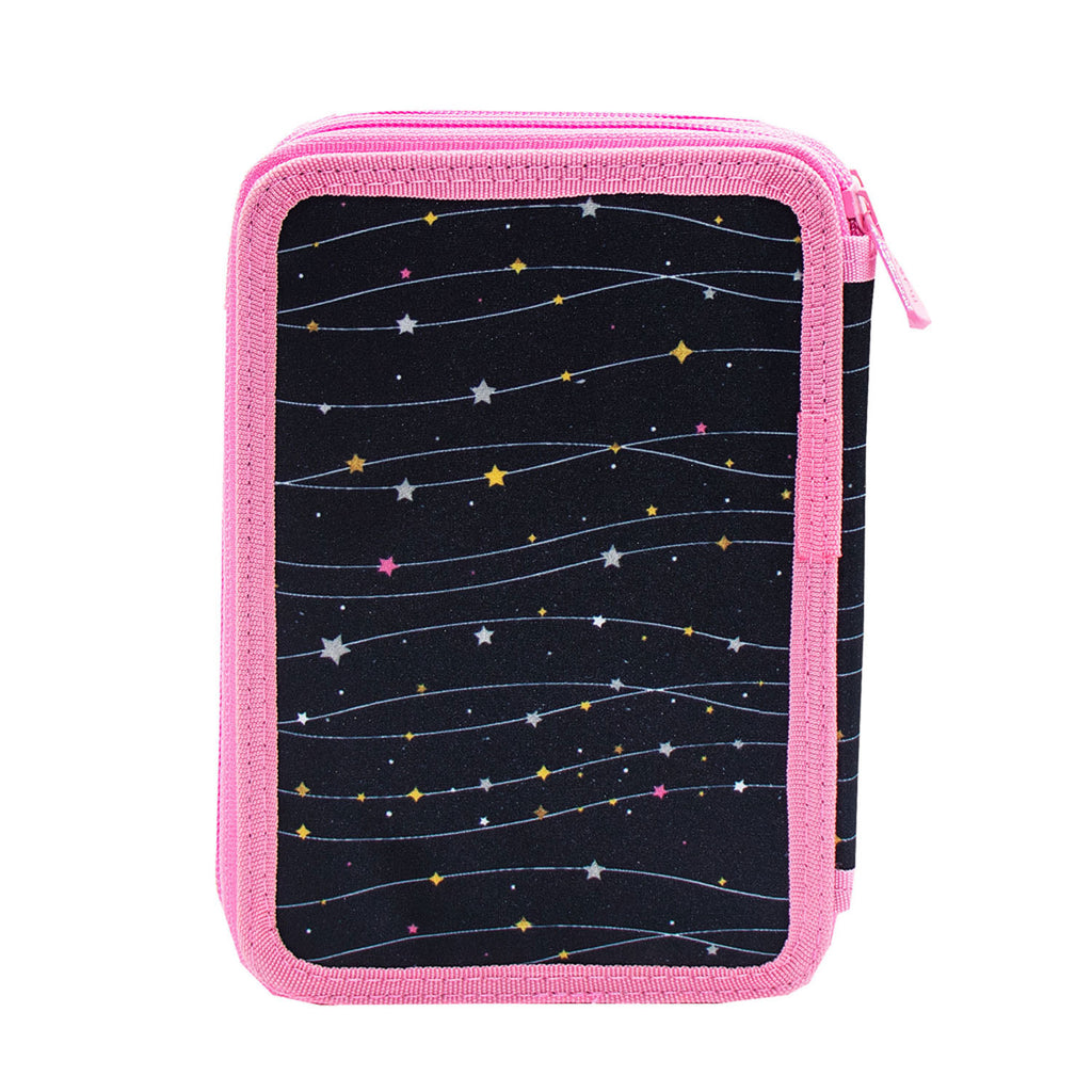 Handige gevulde etui met Star opdruk van een Sterrenmeisje, vol met leuke en handige accessoires, zoals stiften, pennen, potloden, een gum, een liniaal, een geodriehoek en een stencil met cijfers.