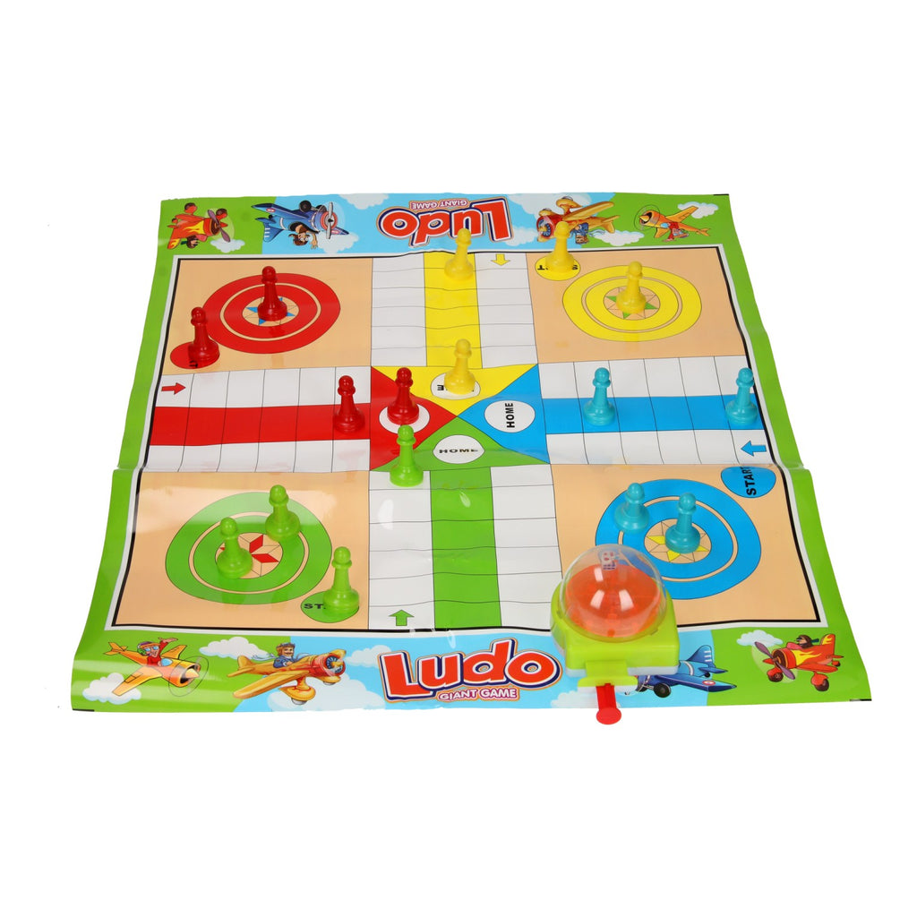 Leg het speelkleed Ludo op de grond, kies een kleur pionnen en dobbel maar! Lukt het jou om als eerste de pionnen binnen te halen? Dan ben jij de winnaar van het spel! Het leuke aan dit spel is dat de dobbelsteen in een soort van koepel zit en door middel van een duwmechanisme gegooid kan worden. Wanneer de dobbelsteen gegooid wordt geeft de koepel licht. Dit spel kan gespeeld worden door 2-4 spelers en is geschikt vanaf 3 jaar.