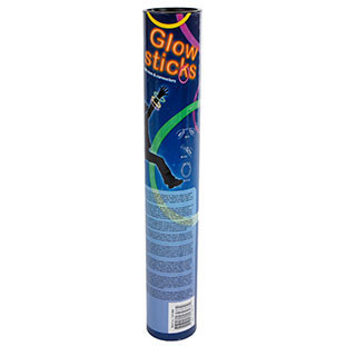 Glow stokjes in koker, 50 stokjes in verschillende kleuren met verbindingsstukjes. Na gebruik invriezen om opnieuw te gebruiken.