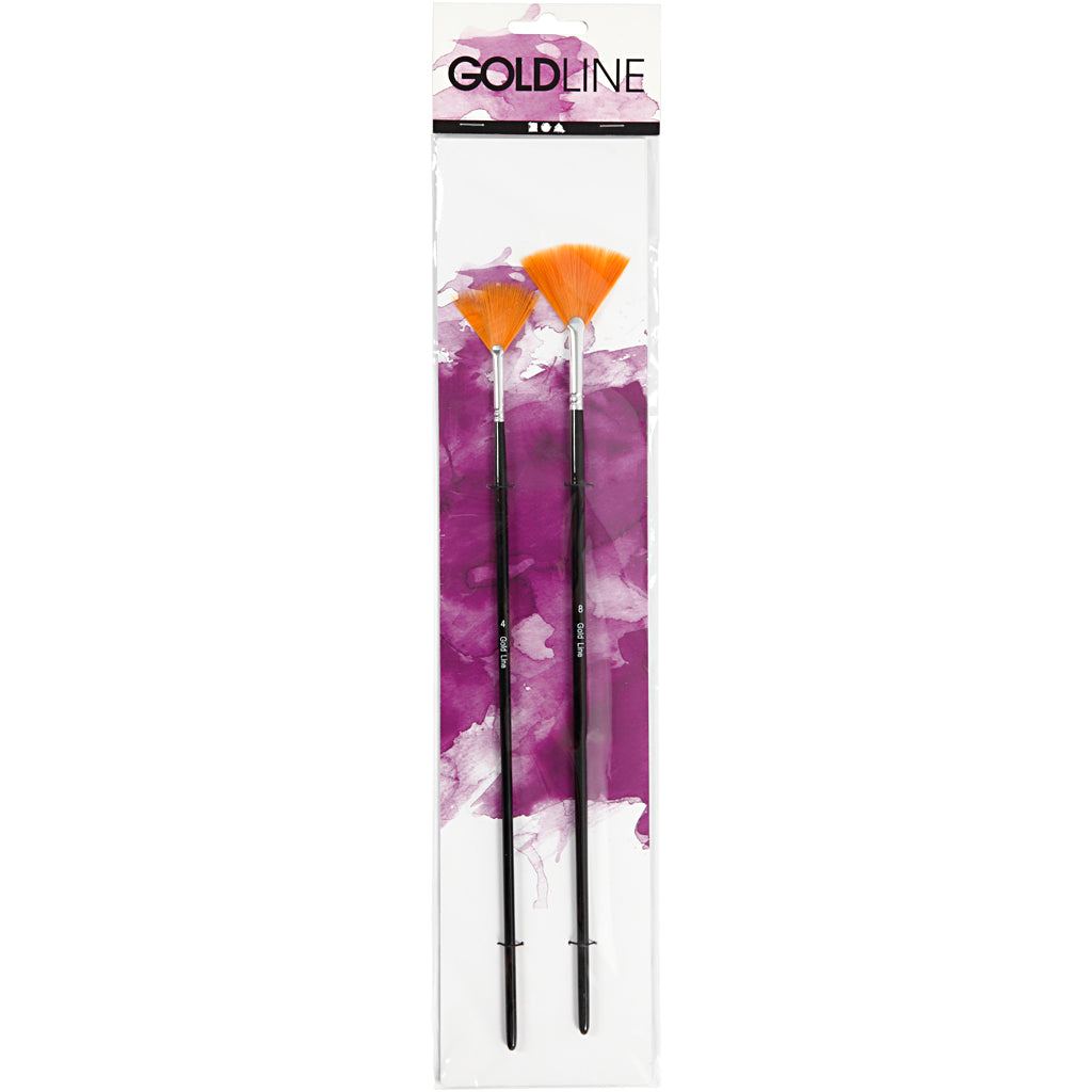 Gold Line waaierpenselen. De waaierkwasten hebben maat 4 (35 mm) en maat 8 (45 mm).