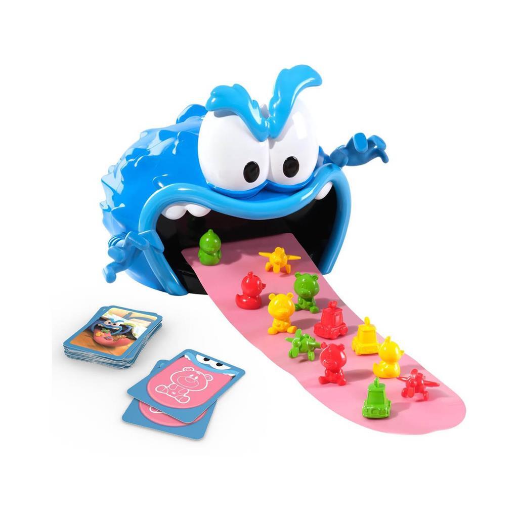 In de doos: Vince Veelvraat met zijn hele lange tong, 3 autootjes, 3 vliegtuigen, 3 teddyberen en 3 eendjes, 24 speelkaarten en natuurlijk spelregels. Exclusief 3 AAA batterijen.