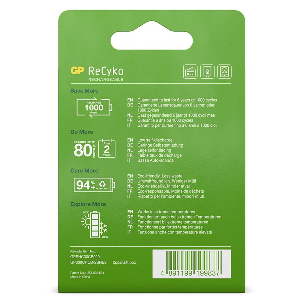 - Lange levensduur, tot 500 keer oplaadbaar