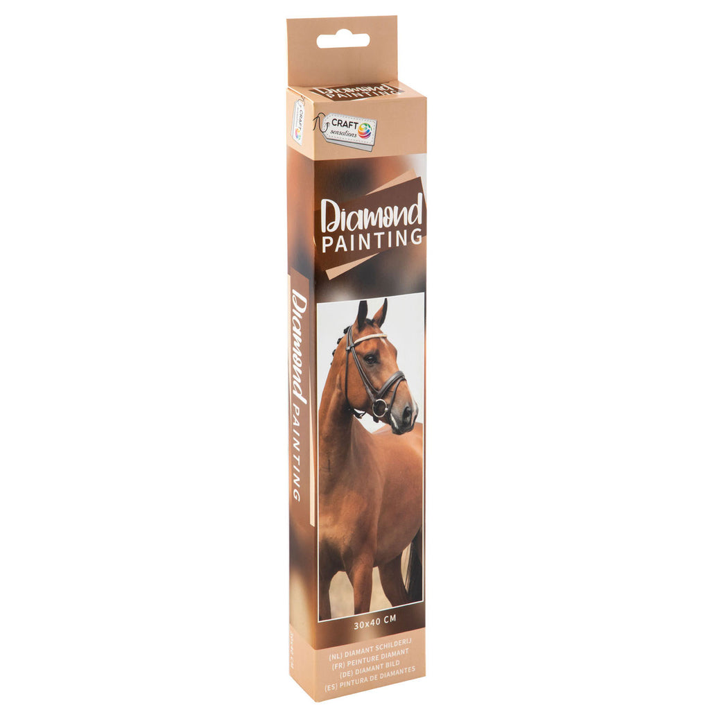Diamond Painting 30 x 40 cm Paard. Compleet pakket Diamond Painting. Inhoud: canvas tekening met de afbeelding voorbedrukt,hoge kwaliteit Diamond painting steentjes,1 standaard pen,1 wax blokje en1 schudbakje.