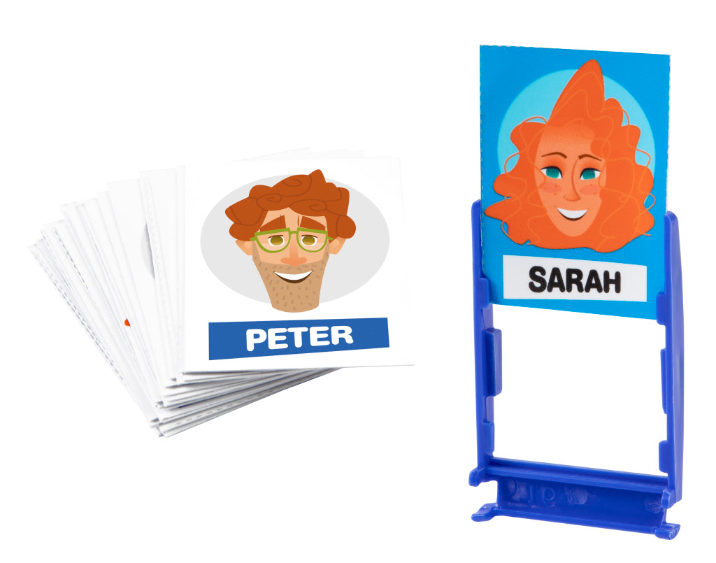 Raad de Naam spel voor 2 spelers vanaf 5 jaar oud. Stel slimme vragen, elimineer karakters en win!