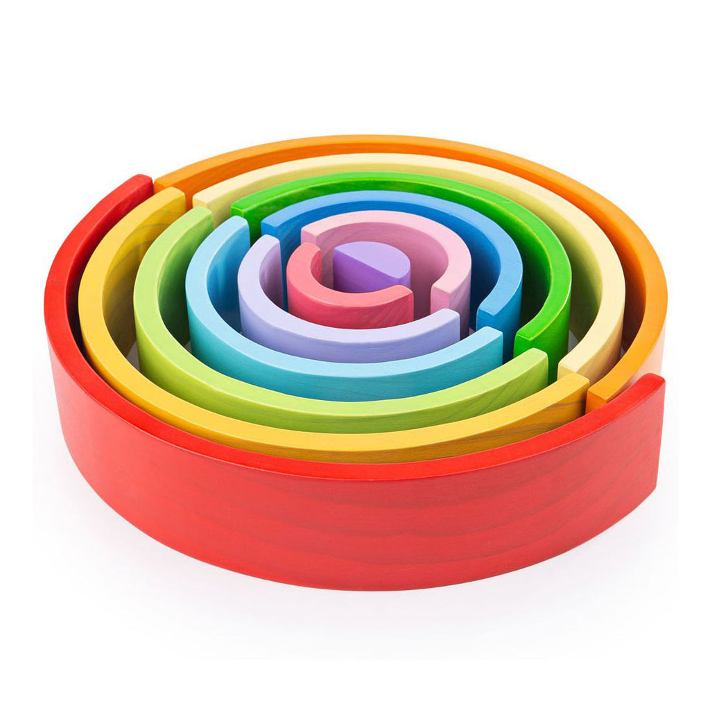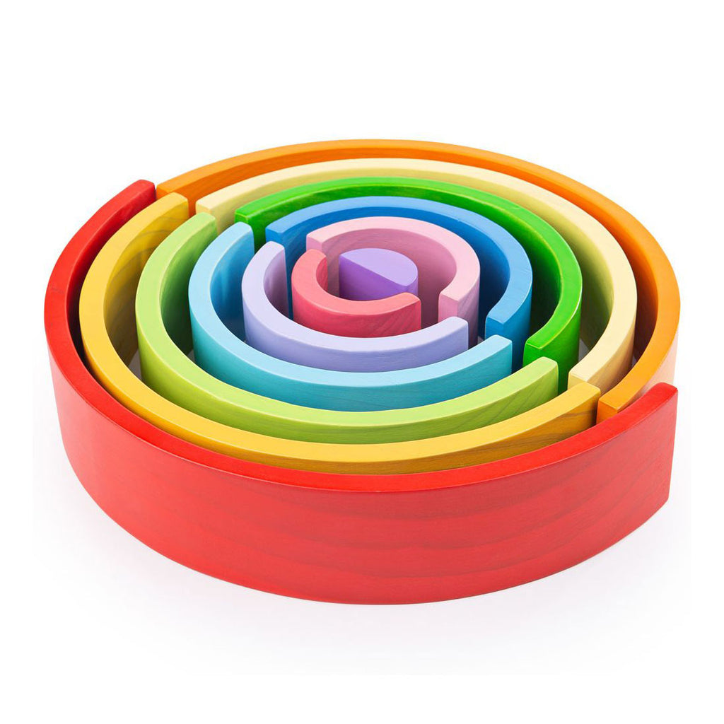De speelmogelijkheden zijn eindeloos met dit veelzijdige en stevige grote regenboog stapelspel. Zonder richtlijnen of regels is het een briljant Montessori-speelgoed. Met deze stapelbare speelgoedbogen kunnen kleine handjes allerlei vormen en voorwerpen in elkaar zetten terwijl ze alles leren over verschillende maten en kleuren. Gemaakt van massief hout en gekleurd met niet-giftige verf. Zodra de speeltijd voorbij is, is deze Rainbow Stacker een leuke decoratie voor de slaapkamer of kinderkamer van je kleintje. Ontwikkelt creativiteit en behendigheid. Geschikt voor kinderen vanaf 3 jaar.