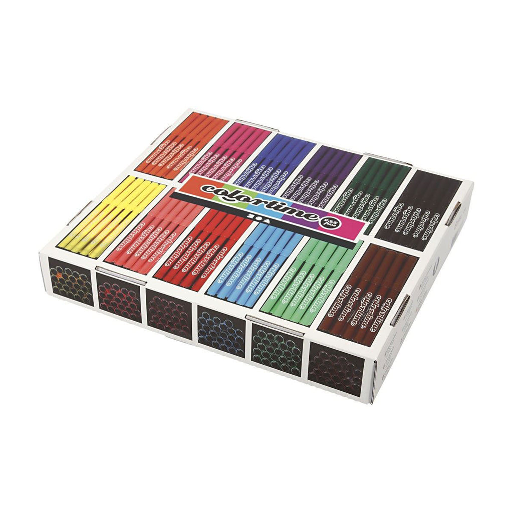 Mooie kwaliteit stiften op waterbasis met sterke dekkracht, droogt snel en met veiligheidsdop. Set met 12 kleuren, van elk 24 stuks. Geleverd in een voorraaddoos. Lijndikte 2 mm.