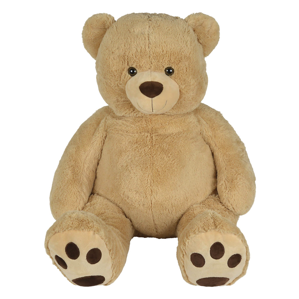 Beige teddybeer van pluche, met een lengte van maar liefst 135 centimeter. Geschikt voor kinderen vanaf 0 jaar oud.