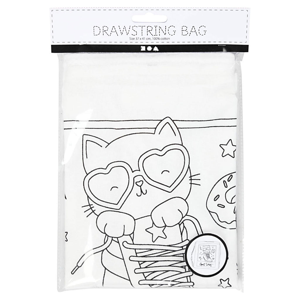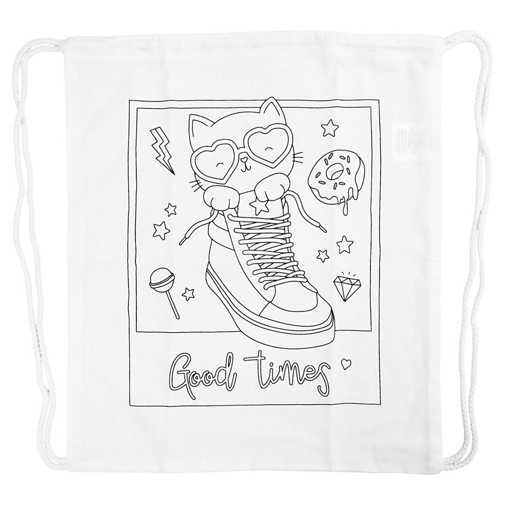 Wees creatief en personaliseer deze handige rugzak met kleurrijke voorgedrukte motieven aan één kant. Gebruik textielstiften in uw favoriete kleuren om de tas uniek te maken. De tas is gemaakt van 100% katoen en heeft een praktische trekkoordsluiting om spullen veilig te houden en gemakkelijk mee te nemen.